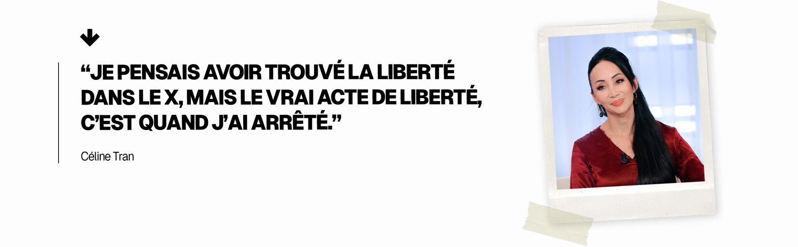Si Céline Tran s’est lancée dans le X, c’est parce qu’elle y voyait un moyen d'émancipation. “J’étais timide et je voulais être comme les autres." À ce moment-là, elle reprend possession de son corps et décide d’en faire une carrière. Cependant c’est lorsqu’elle arrête dans l’industrie du X que l’actrice se sent vraiment libre.